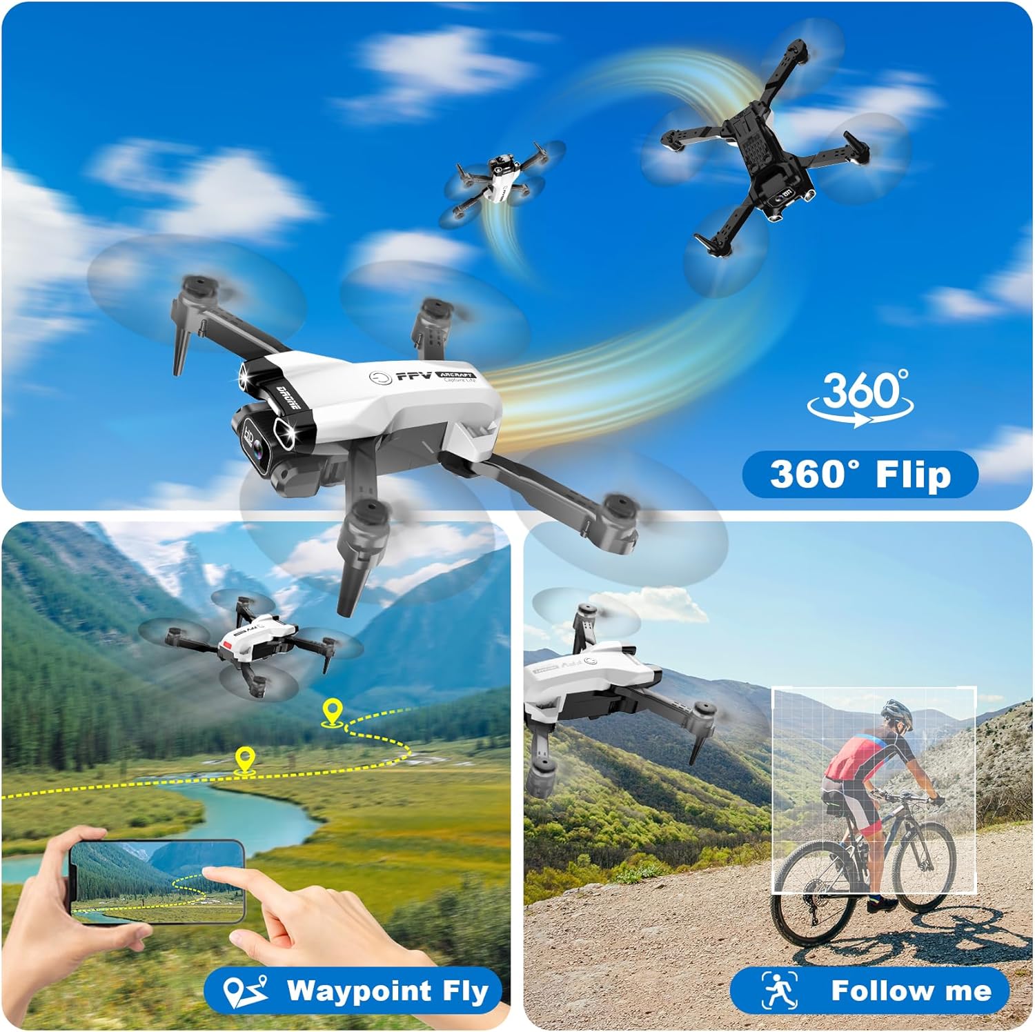Multiple Interesting Functions: Equipped with multiple modes, including Waypoint Flight, Gesture Selfie, 360° Flip, Voice Control, Circle Flight, Spiral Flight, 3-Speed Mode, Headless Mode, and One-Key Takeoff/Landing. You can take selfies based on poses or perform thrilling stunt flights. Whether you’re a beginner or an experienced player, our drone guarantees an enjoyable flying experience.