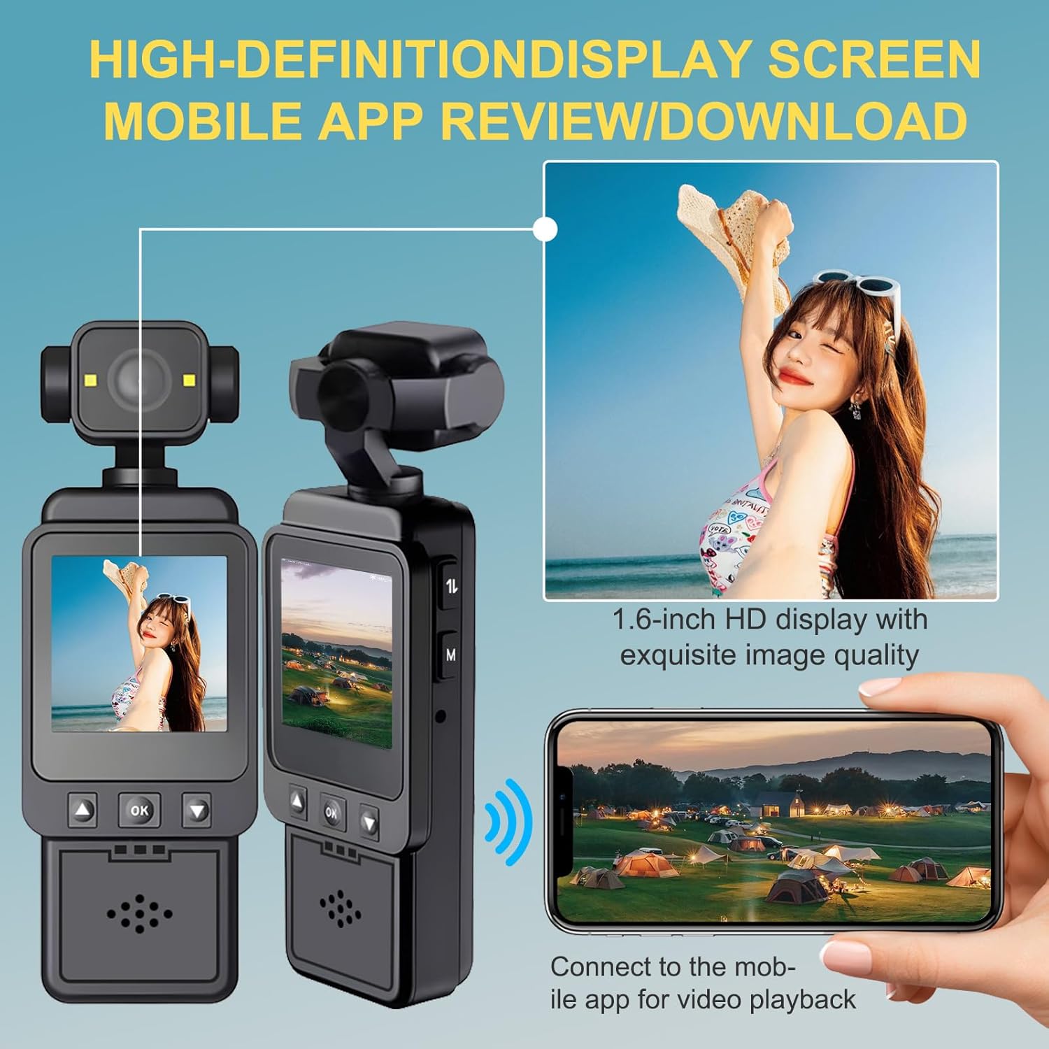 📲WiFi Sync + Real-Time 1.6″ Live Monitor: Connect via WiFi to transfer footage or control the camera remotely—essential for vloggers, travelers, and daily users. The 1.6″ display functions as a real-time monitor, making this the perfect mini video camera recorder for framing shots, checking angles, or reviewing clips instantly. More convenient than typical Body Cameras, this setup brings pro-level viewing to a pocket-sized device.