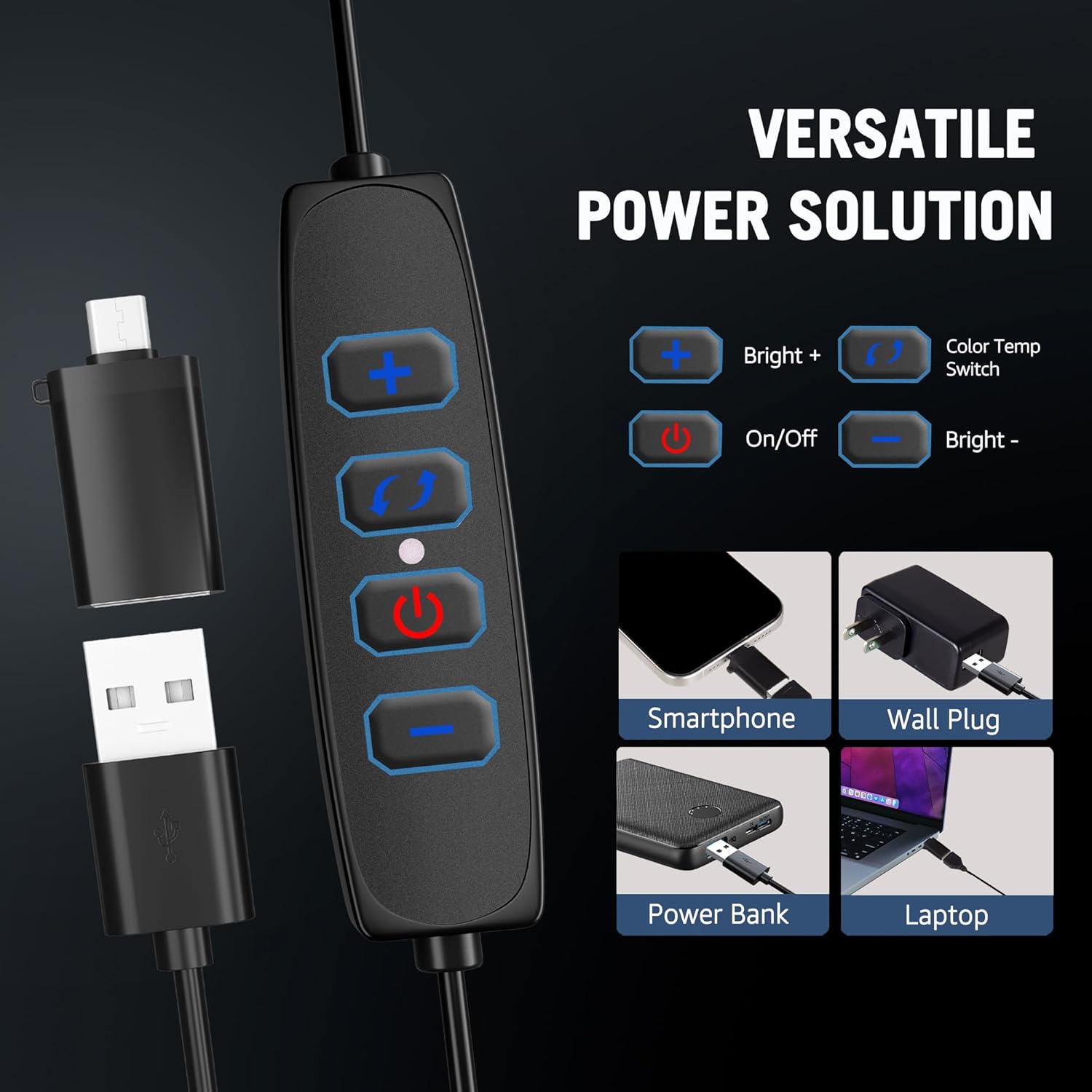 【USB POWERED PANEL LIGHT】The light for photography operates at a working voltage of 5V2A and offers versatile power options through a USB-A port, which allows you to power the light by using devices such as phone chargers, laptops, power banks. The included USB-A to USB-C adapter allows you to power the video light kit with the latest devices, like iPhone 15 and above, MacBook, iPad with USB-C port. Whether you’re at home, on the go or in the office, this ensures you’re always ready to power up with ease.