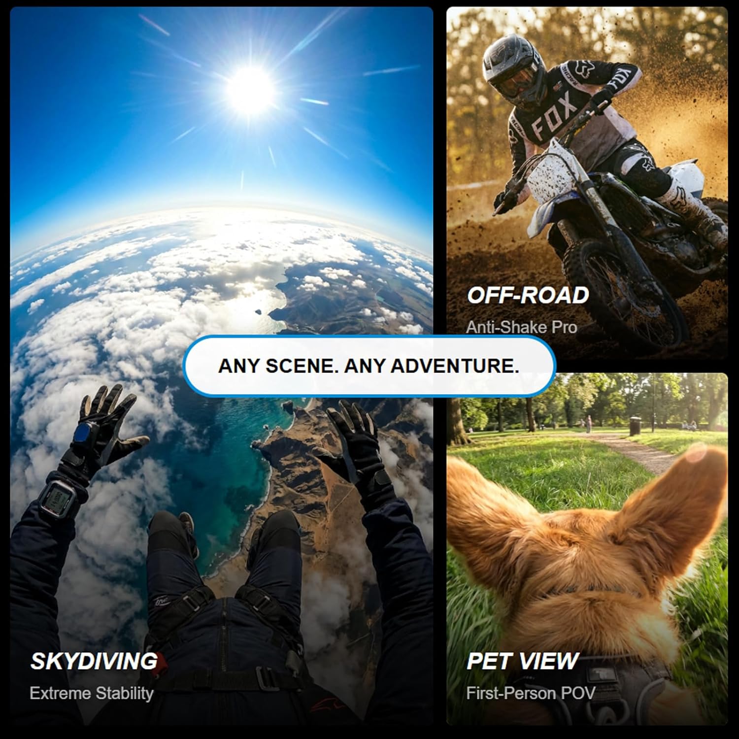 【Adventure-Proof: 30M Waterproof】 Take it anywhere. A certified waterproof housing withstands depths of up to 30 meters (100 feet), making it your reliable companion for surfing, swimming, snorkeling, and recording in heavy rain or challenging outdoor conditions.