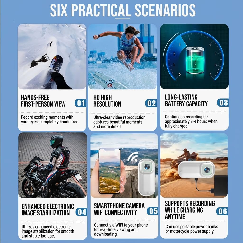 【Stunning 4K in Your Pocket】 Record breathtaking 4K video at a crystal-clear 30fps from a camera no bigger than your thumb! This ultra-portable device delivers professional-grade footage, perfect for first-person POV shots while skiing, hiking, cycling, or capturing daily life discreetly.