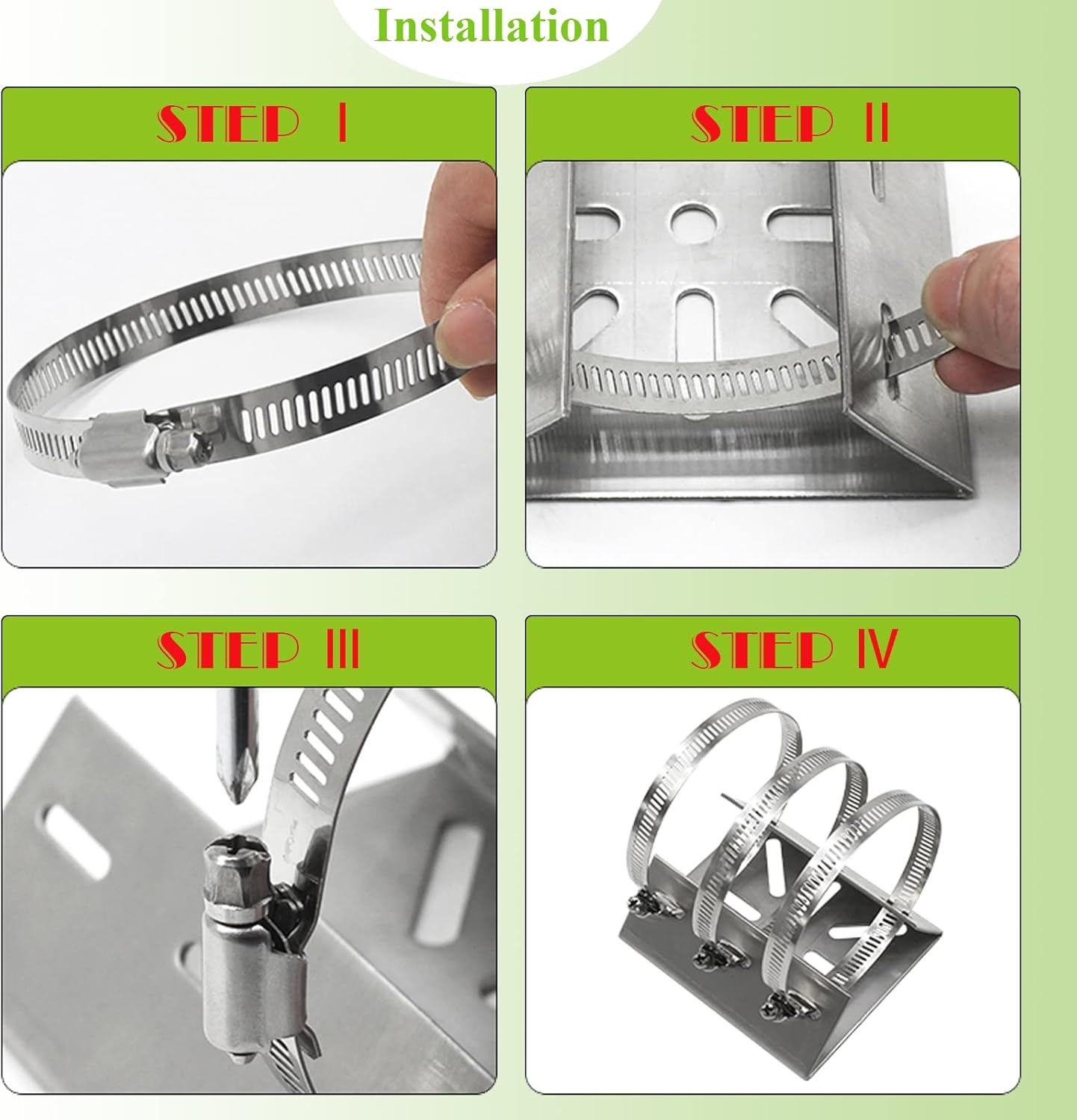 Package Includes: 2 pcs wall mounting bracket +6 pcs loops (Diameter 200 mm).Most poles can be fitted using 4 pcs loops stainless steel loops. We prepare 6 pcs loops for you, it can be fixed tighter or kept as a spare