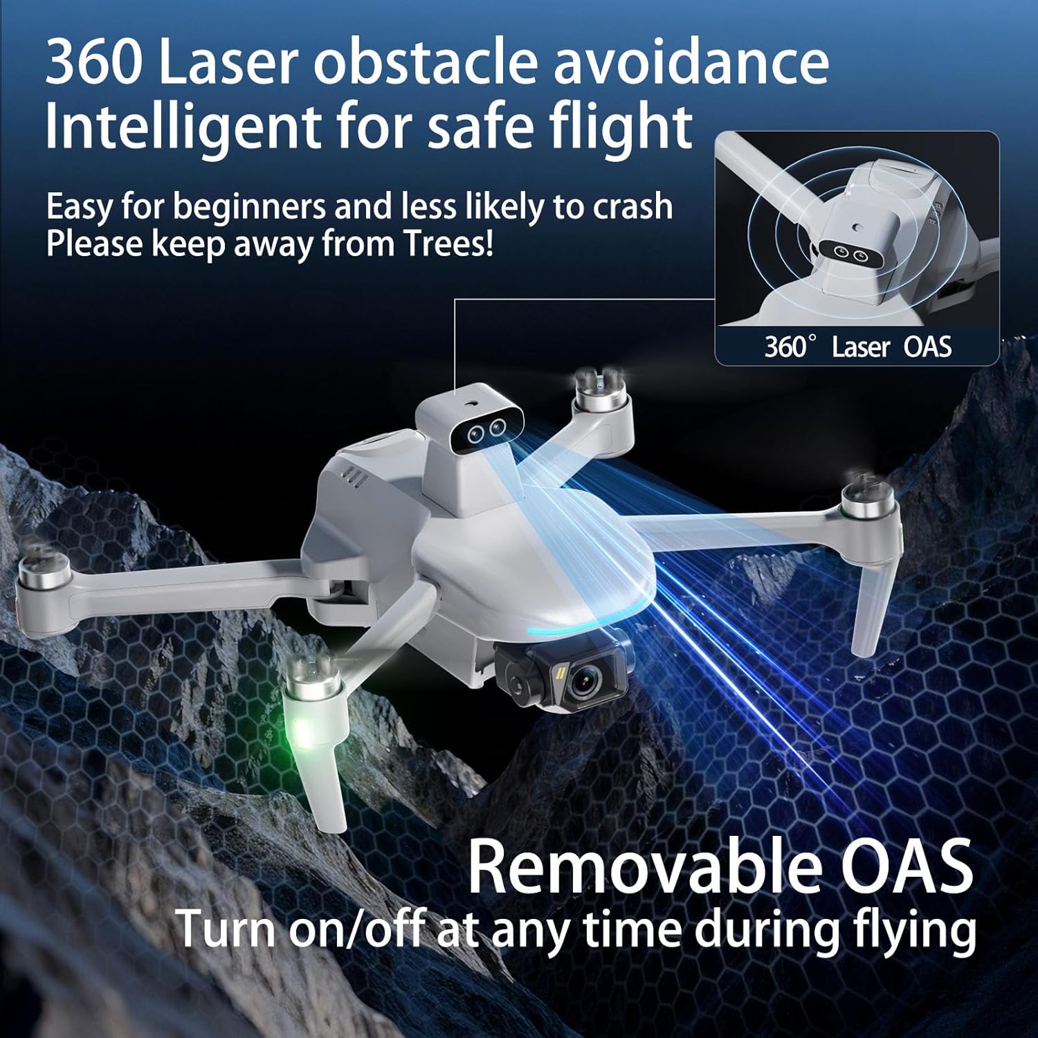 【 360° Laser Obstacle Avoidance & Safe GPS drone】: The Removable 360° OA systerm could avoid the drone hit People, the Walls and the Bulidings in a safe distance, and this smart drone will safely Auto-Return when lost connection or low battery with the OA systerm protection, have tested thousands of times to make it sure and safe