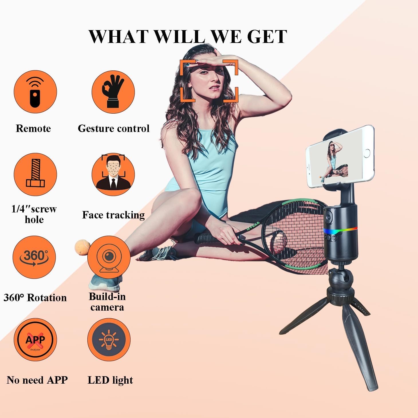 Face Tracking & Adjustable Camera: The built-in camera automatically detects and tracks your face, ensuring you stay in focus. The adjustable camera angle allows for optimal framing and smooth follow-along shots. It is a good vlogging kit for iPhone andriod phone .