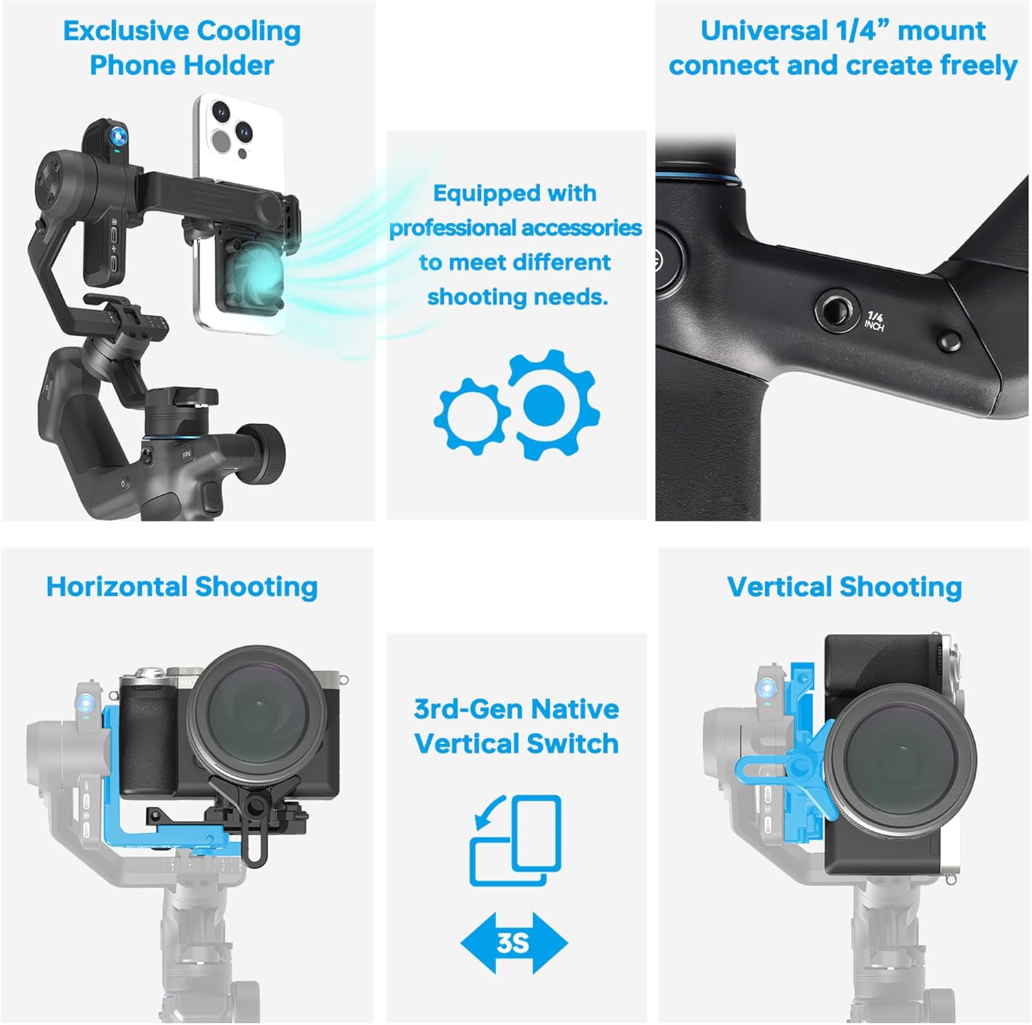 [4-in-1 Mounting Versatility] Supports mirrorless cameras, point-and-shoots, action cams, and smartphones—no need to switch gear. With a 4.4lb max payload, it’s built for serious creators.
