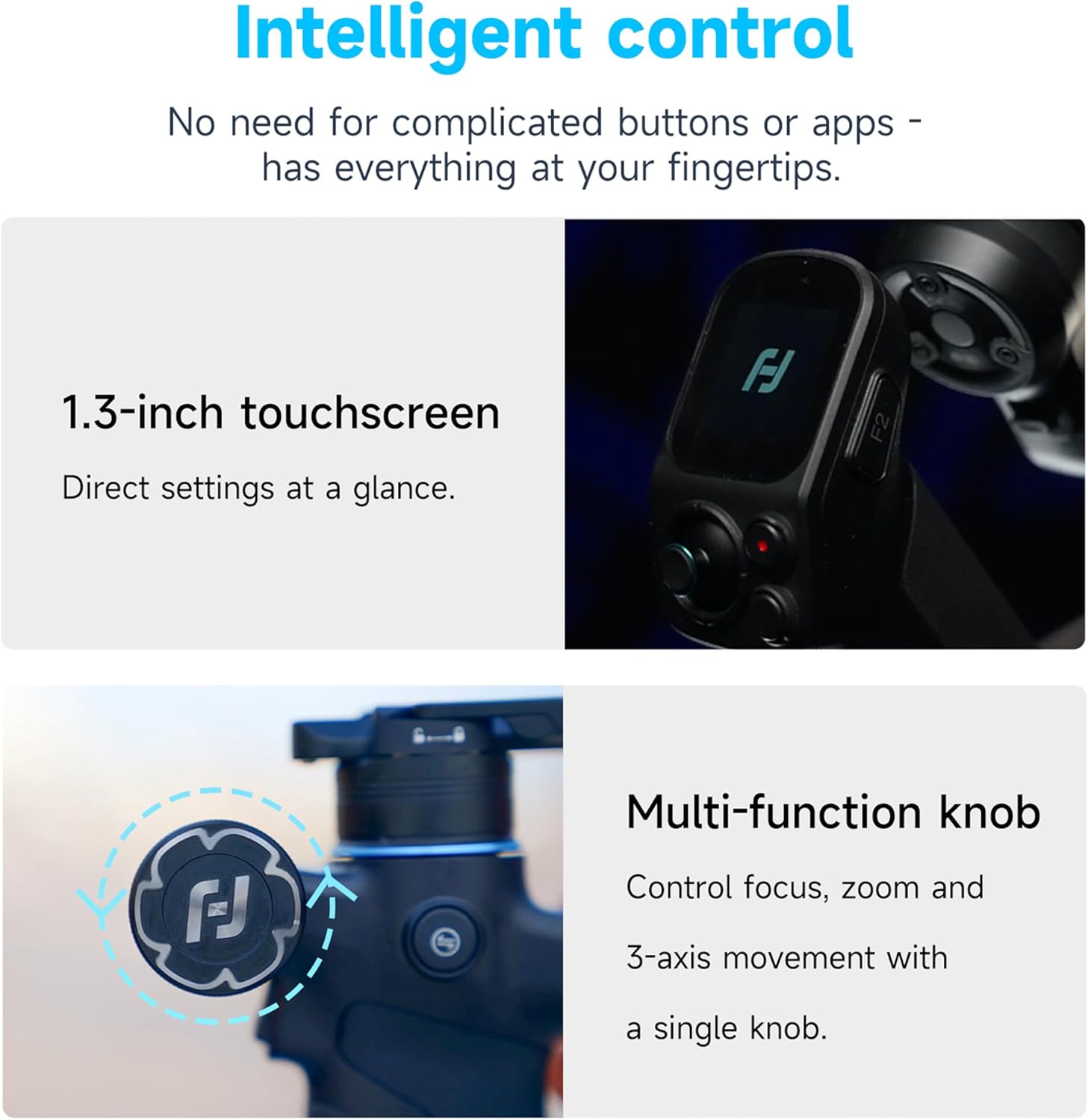 [Detachable Handle & Smart Display] Take control from a distance—detachable handle offers remote control of the gimbal and an integrated OLED screen lets you adjust key settings directly on the device without using an app.