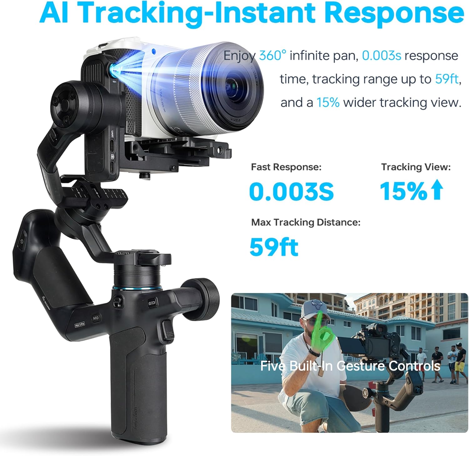 [AI Tracking-Instant Response, 360°lnfinite Tracking] Equipped with the latest AI 4.0 tracking module, SCORP Mini 3 Pro offers lightning-fast response in just 0.003s and tracks subjects up to 18 meters away—perfect for dynamic content creators who need smooth, intelligent framing.