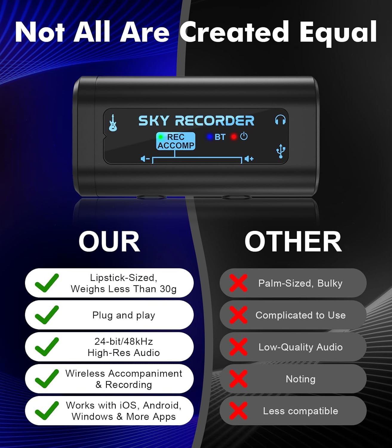 [Bluetooth Sync & Internal Recording] – Built-in Bluetooth allows direct internal audio capture—ideal for creators needing a clean and synchronized feed with their video content