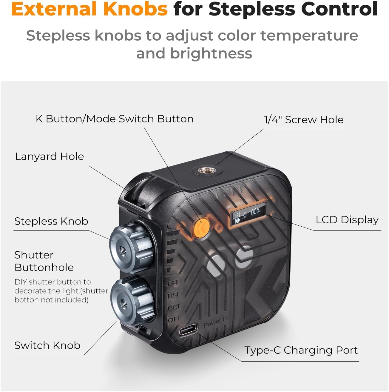 【Thoughtful Product Design】Featuring a built-in LCD display, you can clearly view the current parameter values of the light, making it easy for you to operate and adjust. The infinitely variable metal knob design provides a comfortable adjustment feel, allowing you to fine-tune to a more precise value.