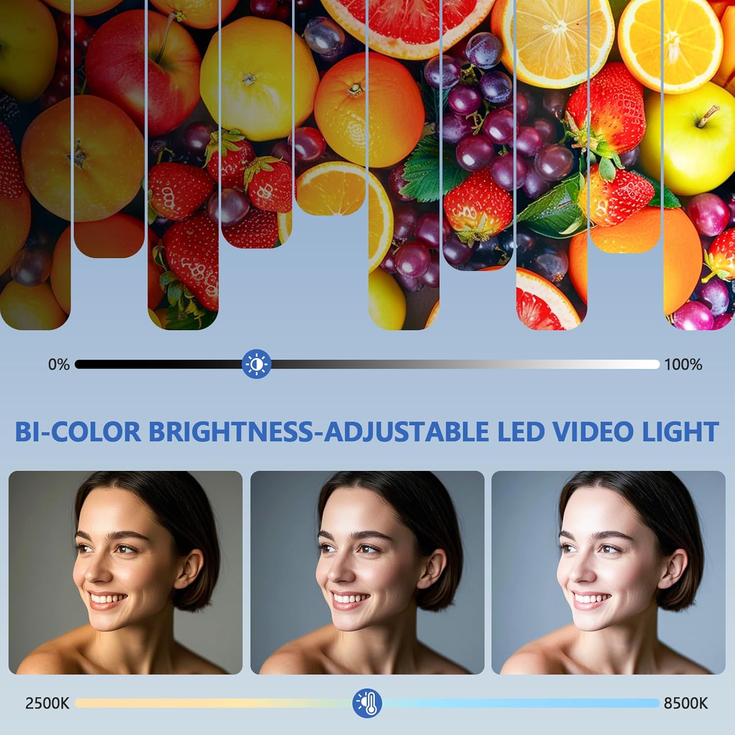 【Bi Color Dimmable & LCD Display】: This 20W bi color video light made of 224pcs LED beads (112pcs yellow, 112pcs white). Adjustable cold and warm temperature (2500K-8500K). Adjustable Brightness of 0-100%. CRI 97+ for optimal lighting, illuminance up to 2200Lux(0.5M). Suitable as a key light or fill light. The generous LCD screen on the rear clearly shows the color temperature, brightness, and battery power status all at a glance, and the heat dissipation holes ensure efficient cooling.