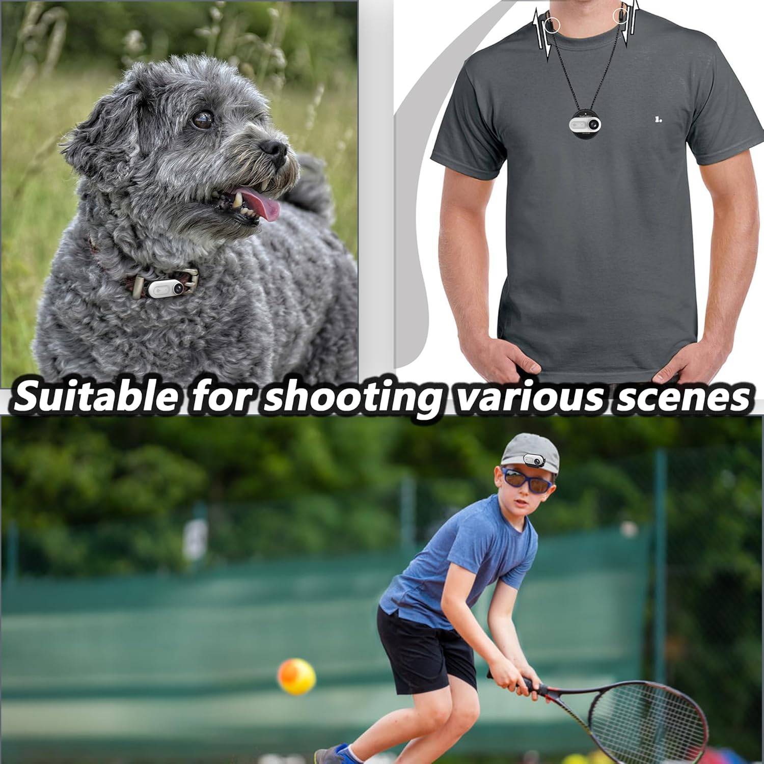【Magnetic Lanyard+Black pet elastic strap + 180° Rotatable Clip】 This mini body camera has a Magnetic Lanyard, a black elastic strap and a 180° rotatable clip, making it versatile for all scenarios. Attach it to clothing, helmets, or even pets for unique perspectives.
