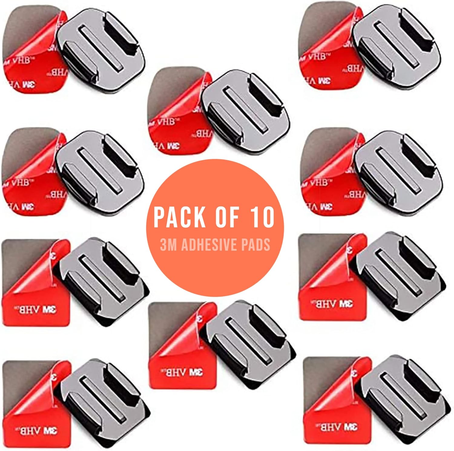 Included in the pack: Our helmet adhesive sticky mount kit for GoPro action cameras contains 10 units in total; 5 x Curved Mount Buckle with Stickers & 5 x Flat Mount Buckle with Stickers.