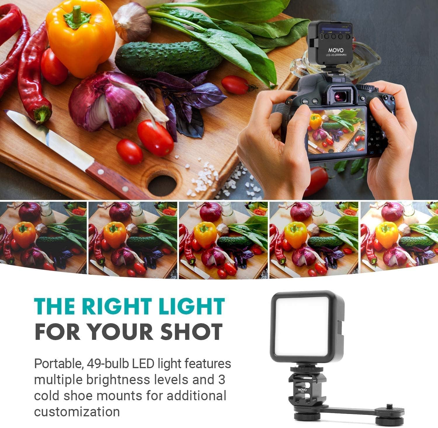 LED LIGHT FOR CAMERA: LED-XS features 5 adjustable brightness settings, allowing you to get the right light for every scene