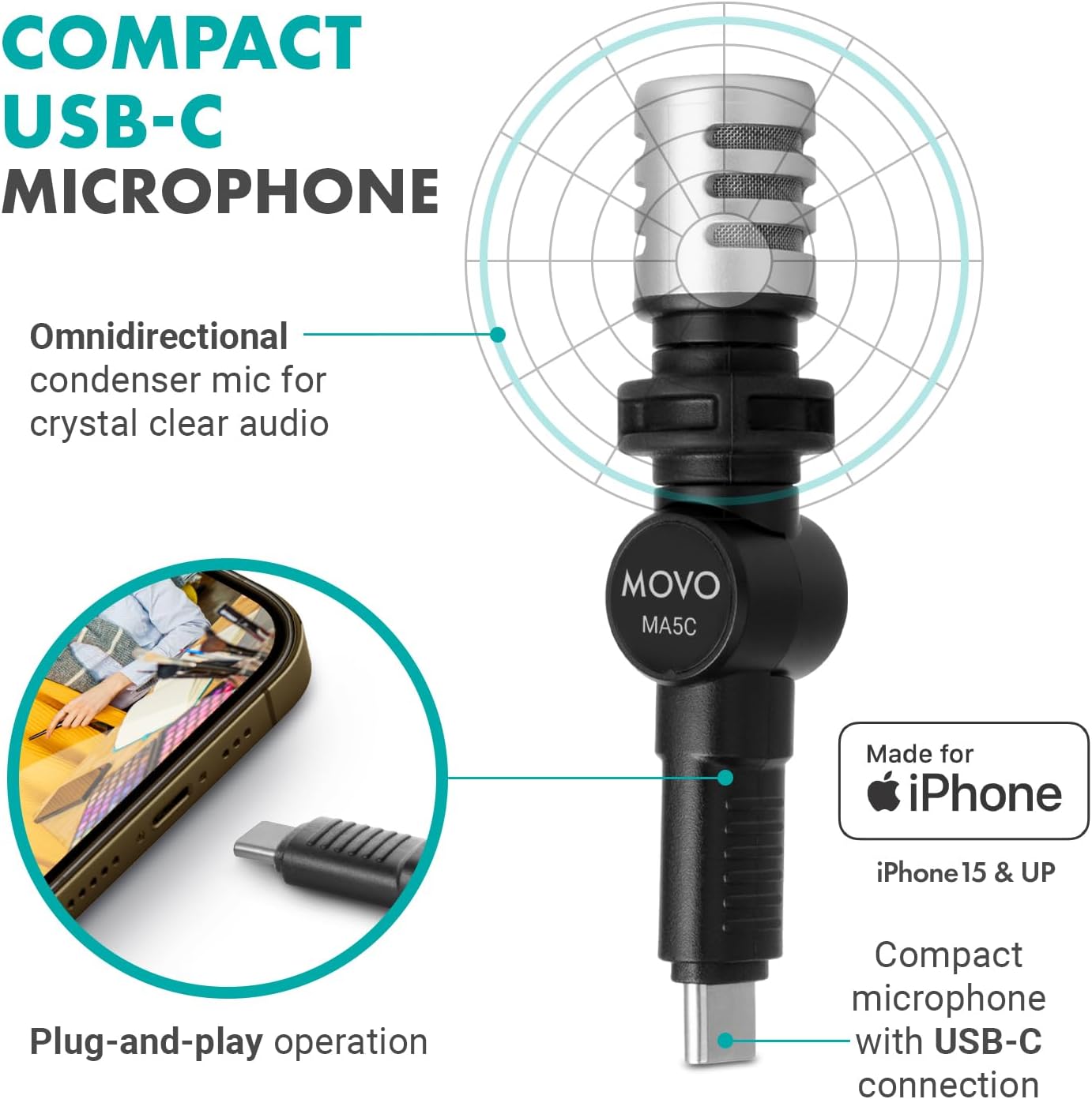 MINI USB-C MIC: The MA5U condenser shotgun mic is compatible with any iPhone USB-C smartphone, USB-C iPad Pro, and other USB-C devices. An omnidirectional condenser microphone capsule and plug-and-play design make it a perfect on-the-go phone microphone for video recording