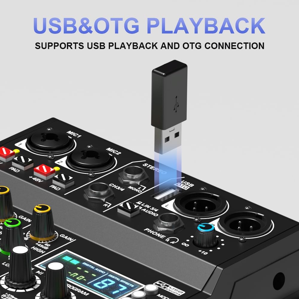 【USB Audio Interface and Lossless Connectivity】Connect to a U disk to play audio or record audio to a U disk for easy and quick connection mixing via mobile phone, iPad