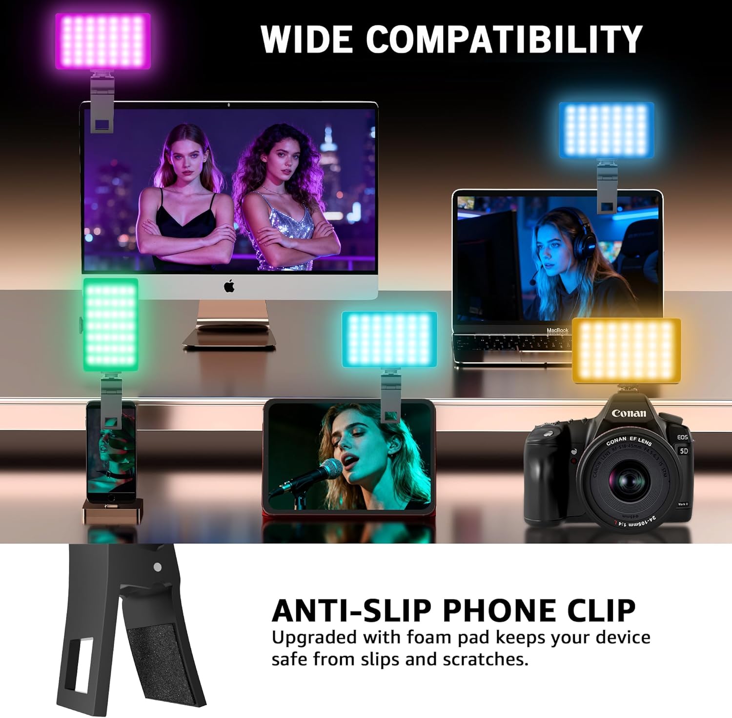 【Packing List】In the package you will get: 1 x RGB selfie light; 1 x Clip; 1 x USB-C Charging Cable; For any inquiries, if there is any problem you can contact us through Amazon or the way attached in instruction, we will try our best to help you.