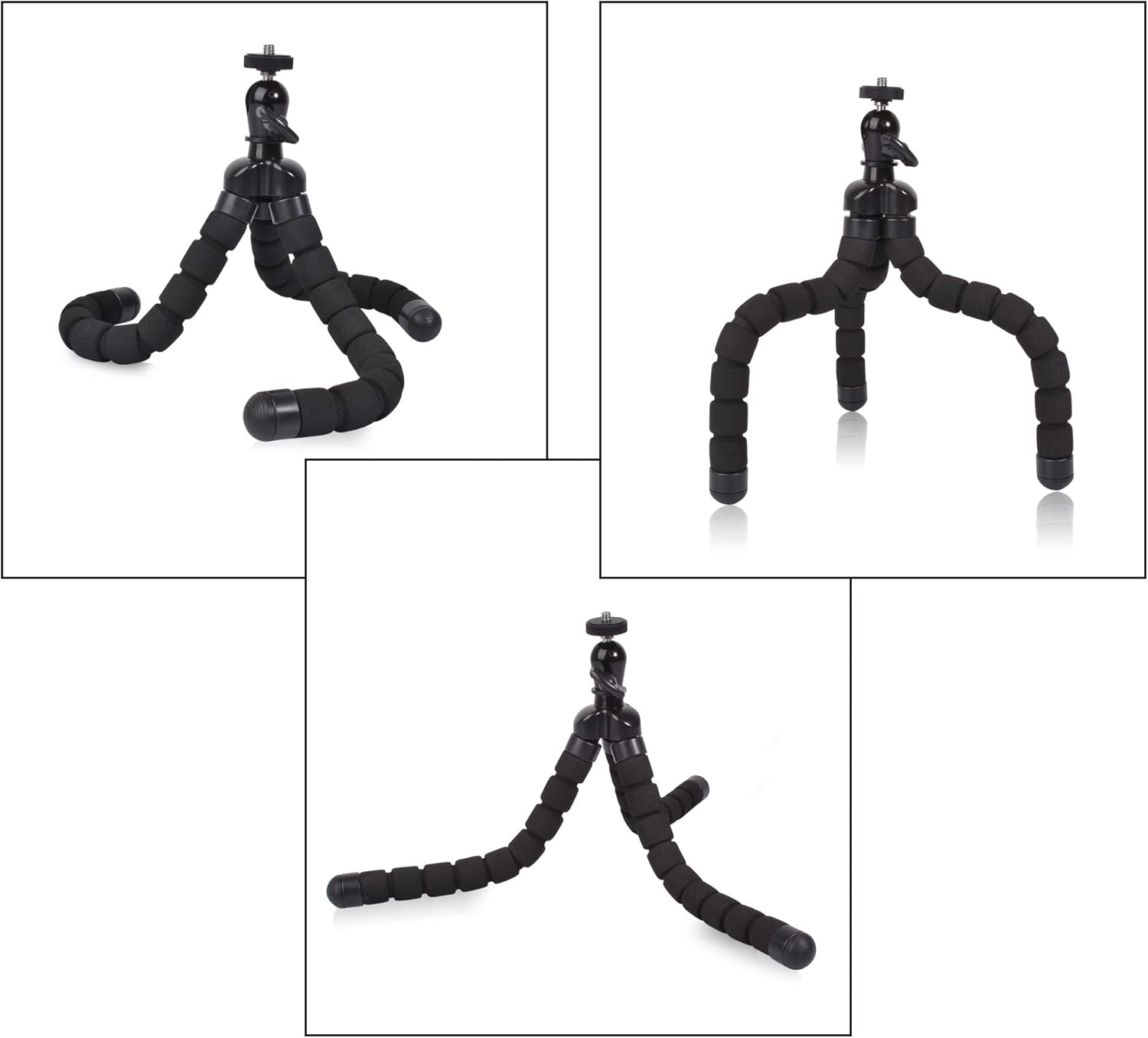 Flexible and Durable: this small tripod is not tiny type, it’s about 12inch tall, you can use it as a short selfie stick, or hand grip, or wrap it on fence, sticks, bicycle handlebars….to take shot which angle is not possible when use normal tripod.