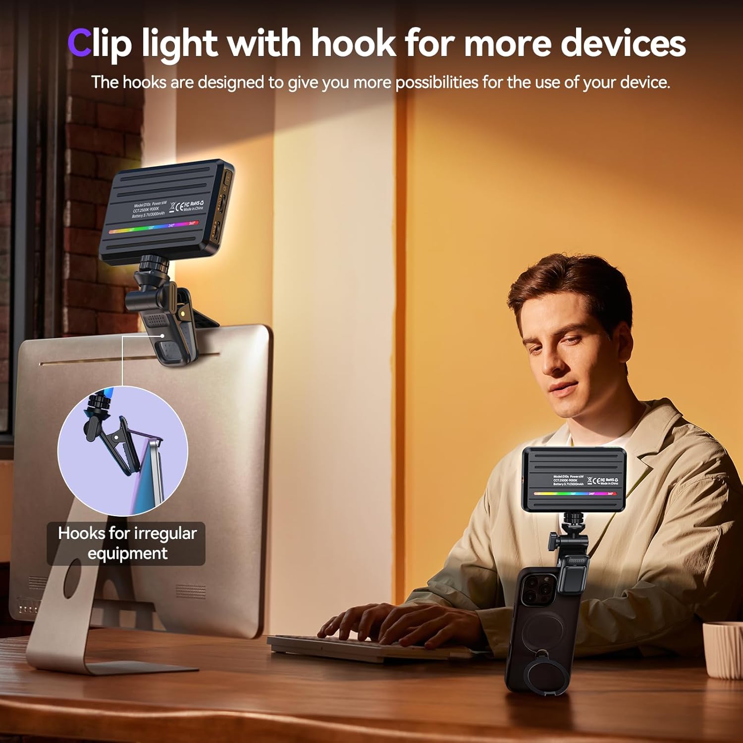 【Multi-functional clip light】Our clip light with hollow design does not block the front camera of the phone, we also designed the hook, it can be hung on the computer monitor and everything that fits him, while you can also put him on the desktop to use