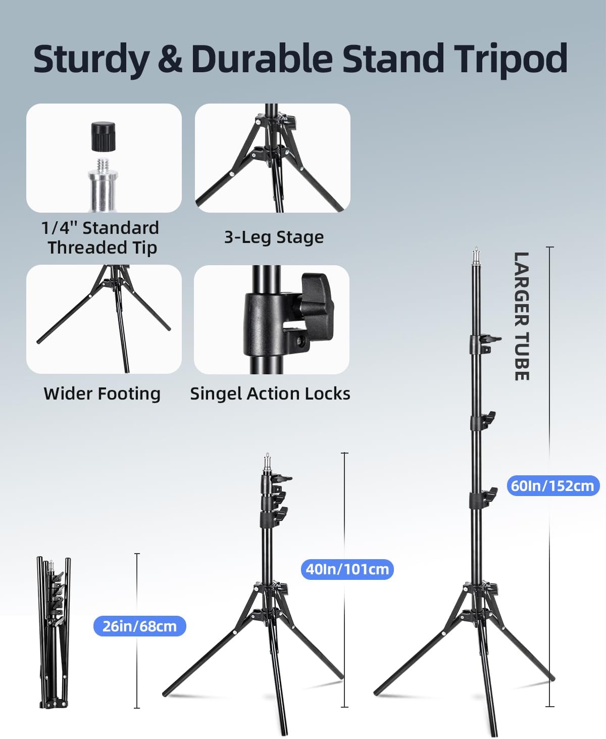 -The three-column design of the light stand gives it excellent stability and strength