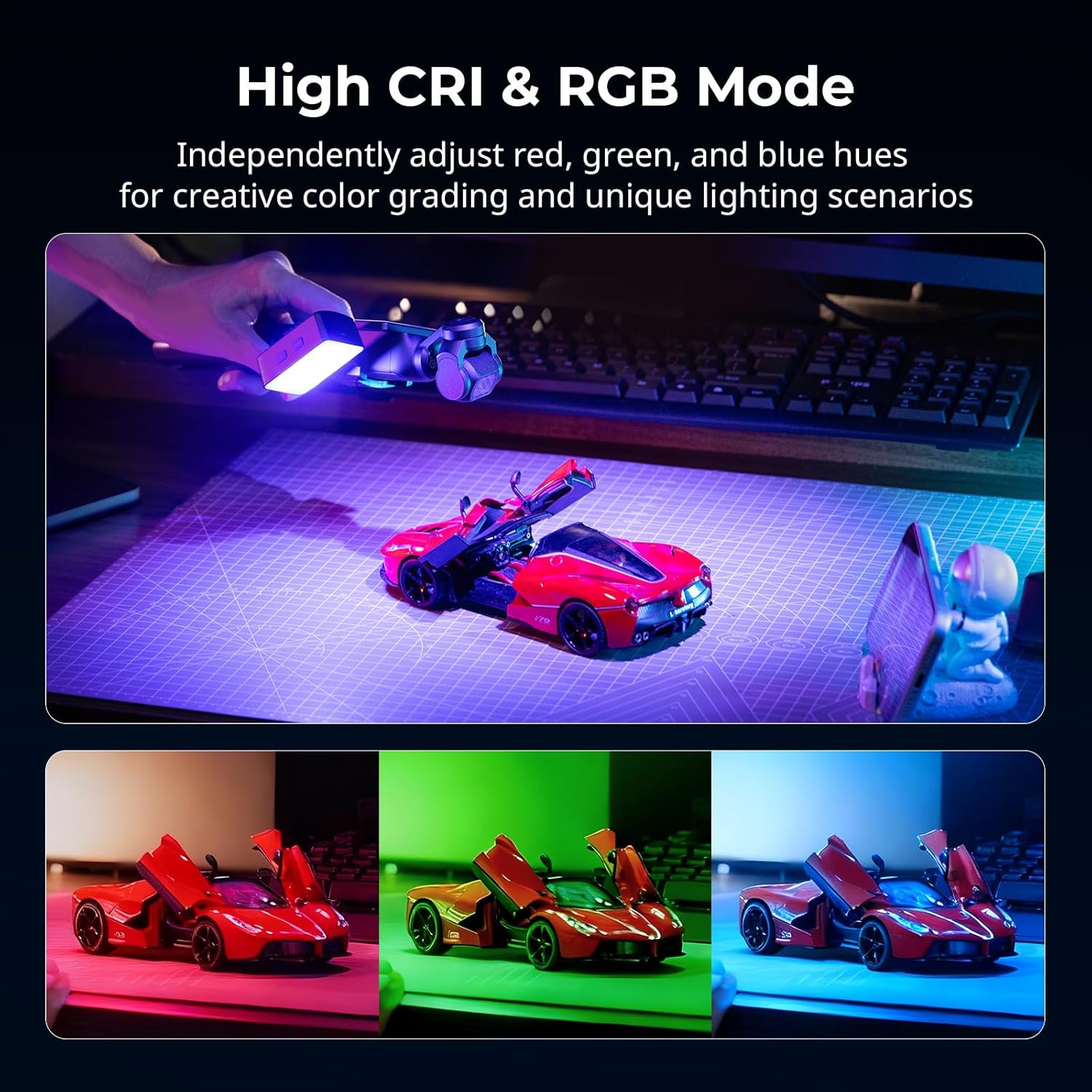 Built-in 650mAh Battery: Built-in 650mAh rechargeable battery, when fully charged, it can provide approximately 60 minutes of stable fill light at 100% brightness. Supports USB-C charging while in use, allowing you to focus on the accuracy/portability/endurance of the light source, shoot without worrying about battery life, create more comfortably