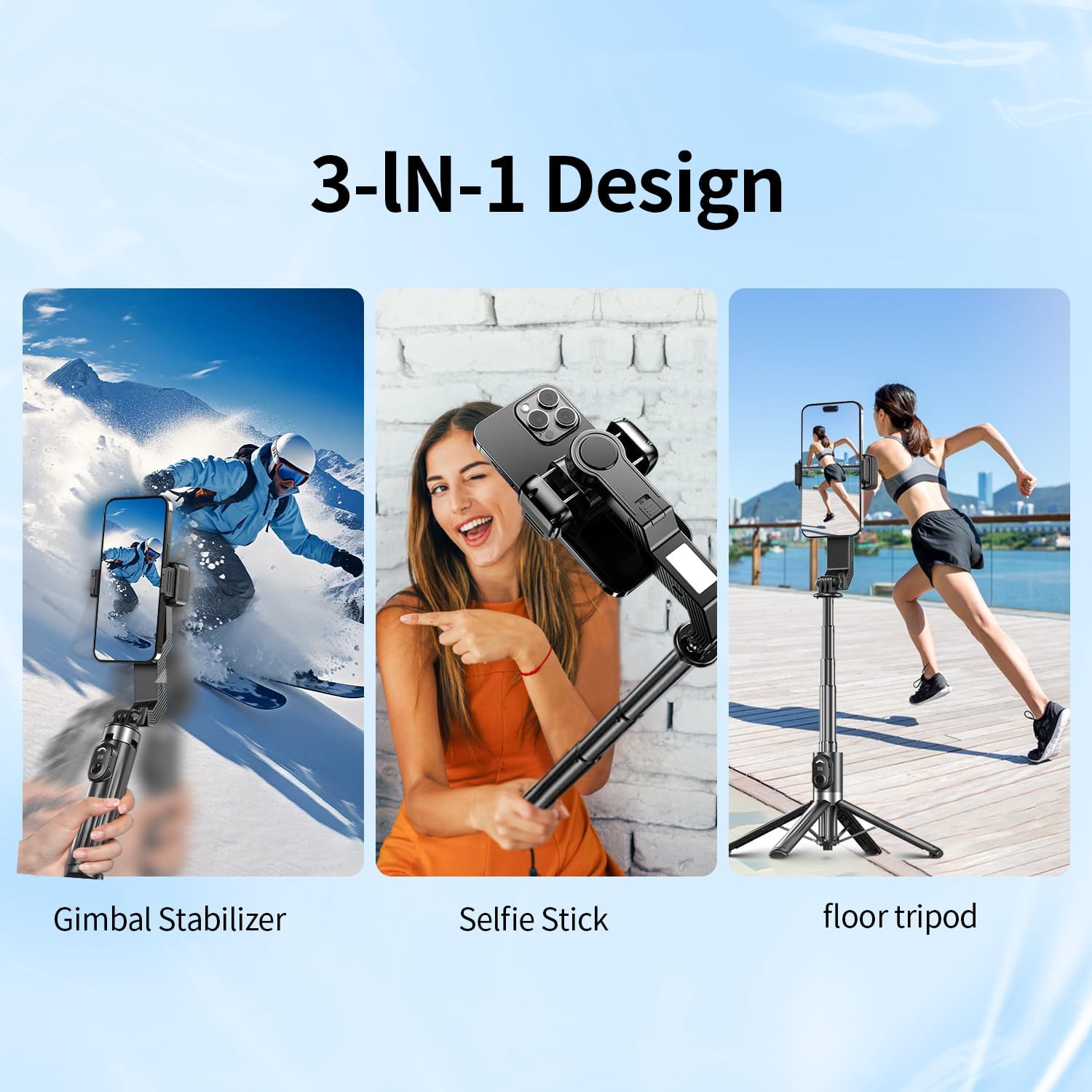 All-in-One Powerhouse: Gimbal, Selfie Stick, Tripod & Light:Ditch your gadget bag! This *4-in-1 gimbal tripod* combines: (1) Pro cell phone gimbal stabilization, (2) Extendable selfie stick for iPhone (6.9-39.7″), (3) Tripod stand, (4) 3-level fill light for eye-safe night shots. One device does it all.