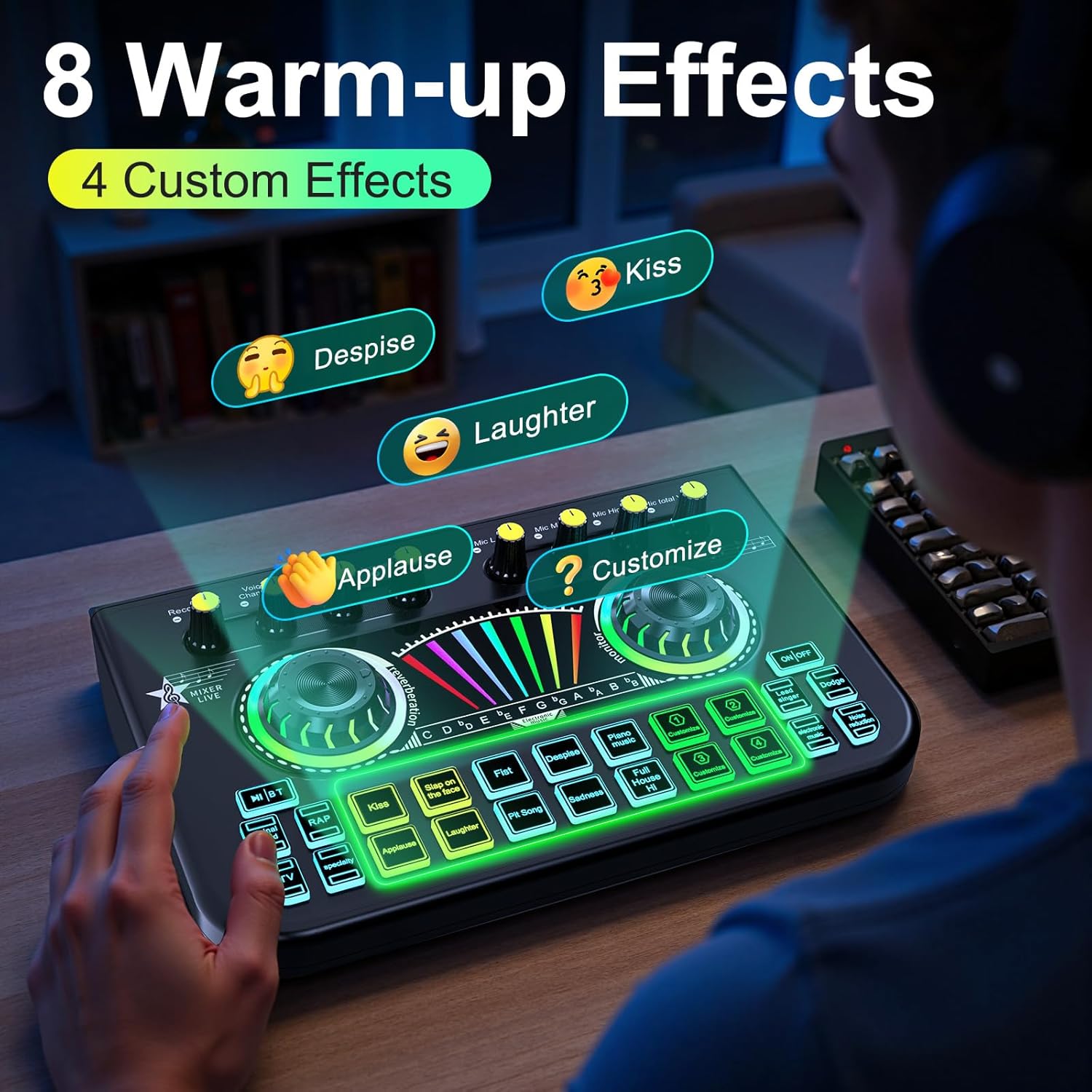 CUSTOME YOUR SOUND EFFECTS: The gaming audio mixer provides 4 customizable soundpads to record your favorite sound effects, combined with 10 preseted soundpads, add fun elements to your podcasting recording, online live streaming or gaming chatting, and make your content creations more entertaining with our X3 sound effect board.