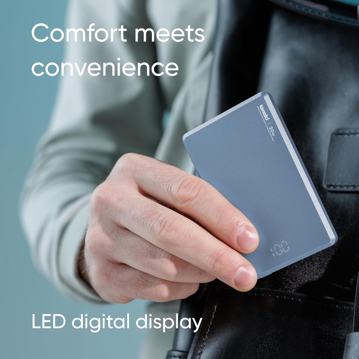 [ Premium Aluminum Alloy Build – Elegant & Durable ] Made from high-quality aluminum alloy, this wireless battery pack offers exceptional durability, heat resistance, and a sleek metallic finish, making it a stylish yet rugged choice for long-term use.