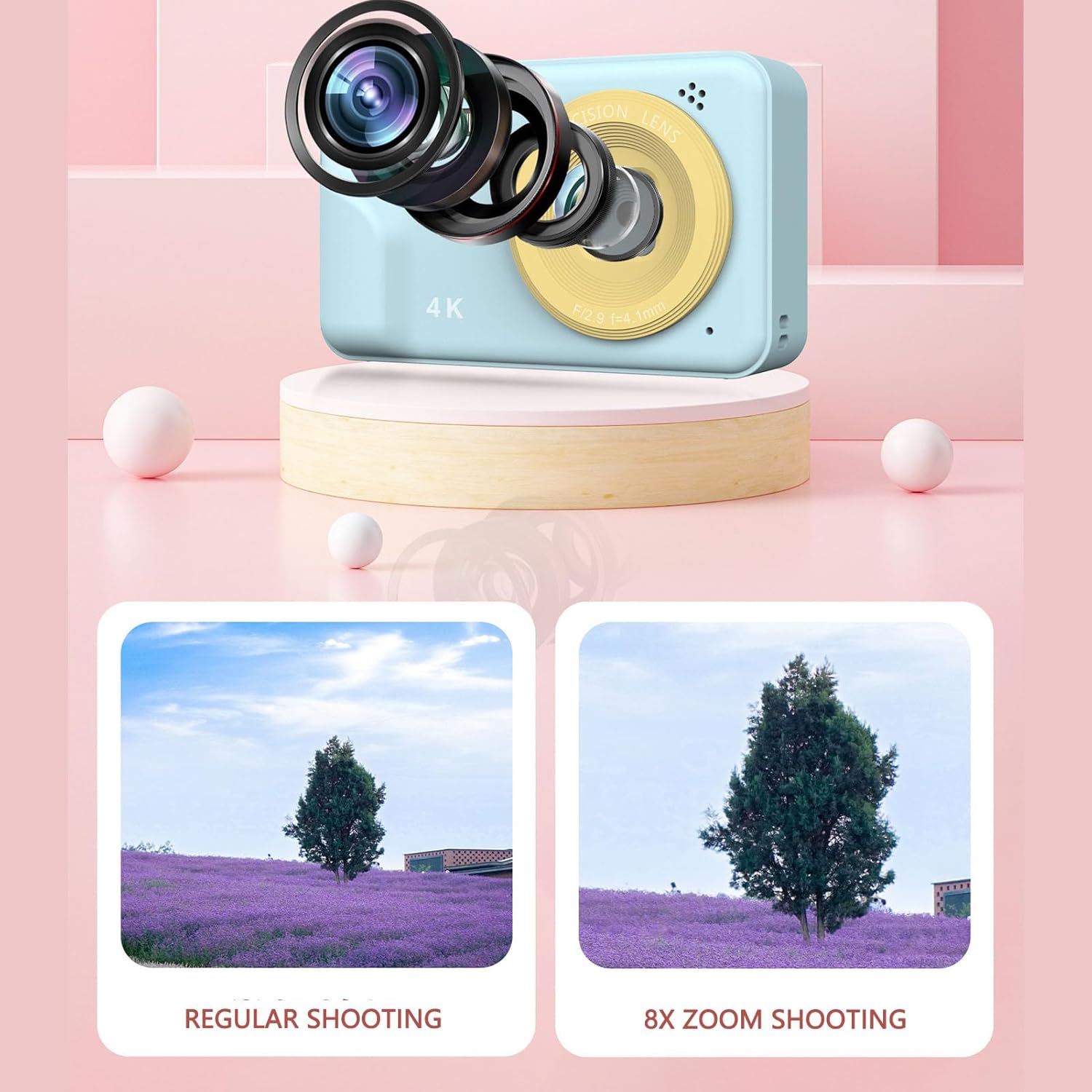 HD 1080P and 48MP Digital Camera: Catch FHD 4K 48MP images and 1080P videos with colors and vivid details. With 8x digital zoom and 7 different filters, this kids’ digital camera allows you to catch clear images even from a distance, preserving exciting and unforgettable moments.