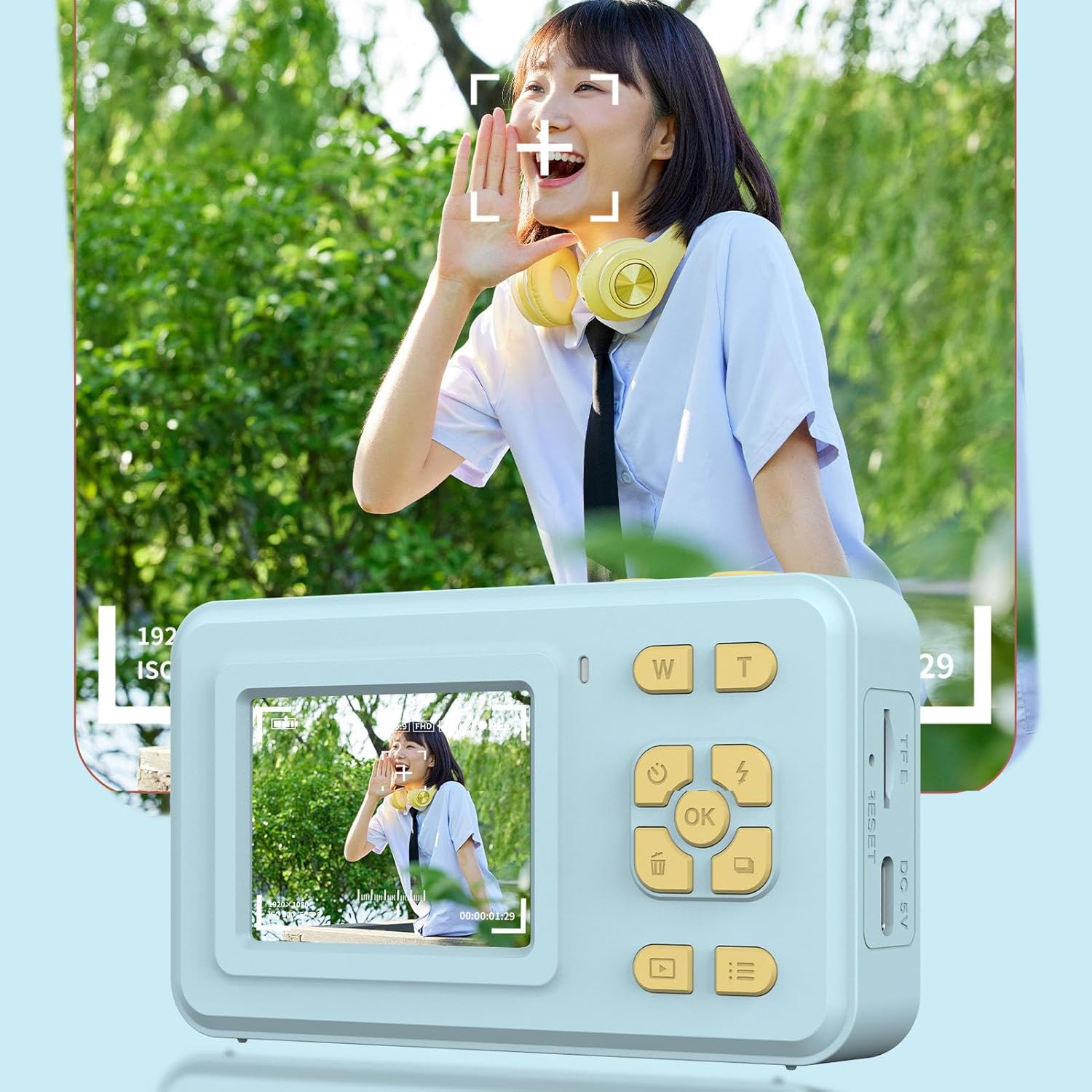 2.0 inch IPS Display and 8X Digital Zoom: Made from premium environmentally friendly materials, this portable mini digital camera for kids features a 2.0inch IPS display for a clearer view of captured images and videos. Whether capturing butterfly in the backyard or school performances from the back row, the W T button easily allows for zooming in and out.