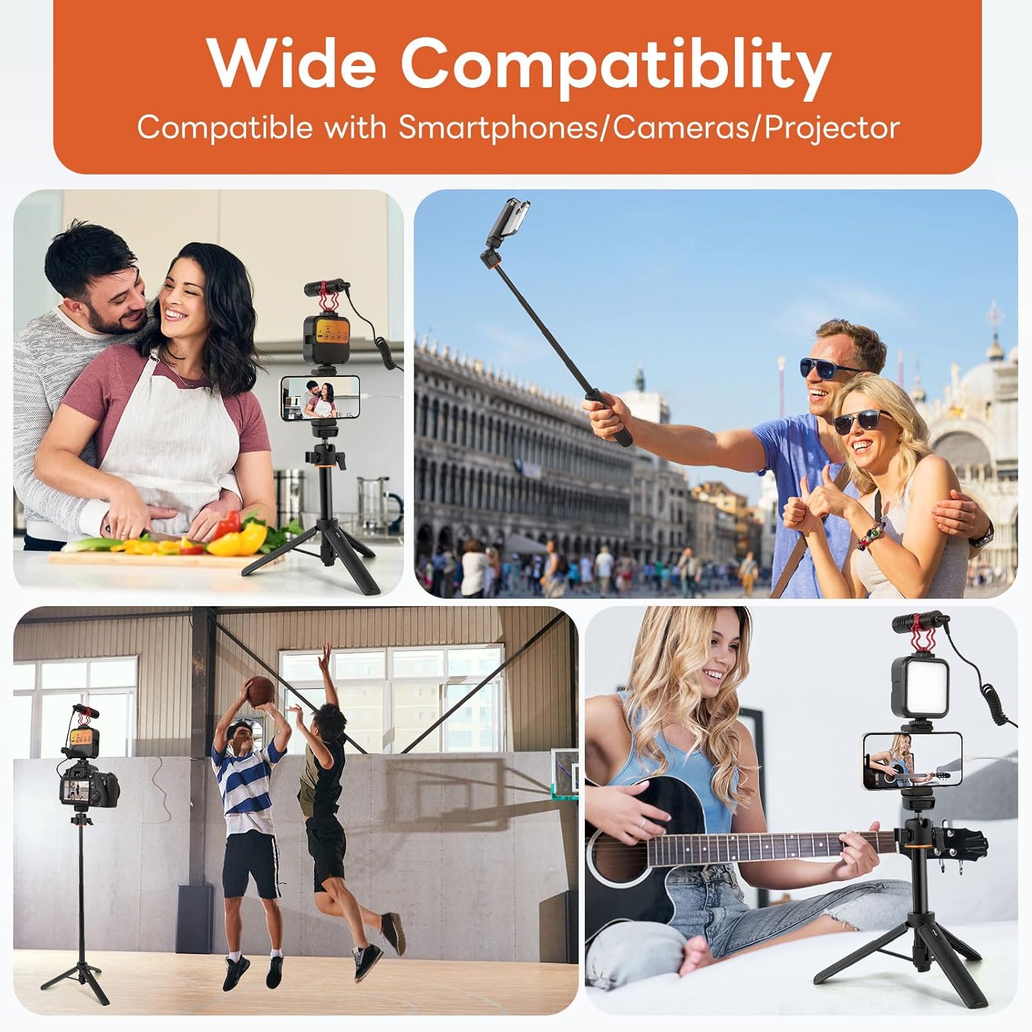 【Noise Canceling Microphone】The video blogging kit comes with a shotgun microphone with a cardioid wide pickup range and powerful noise canceling technology. It reduces background noise while picking up sound and delivers clear, high-quality audio.We also provide adapters for Android and iphone to make the microphone match your phone perfectly.