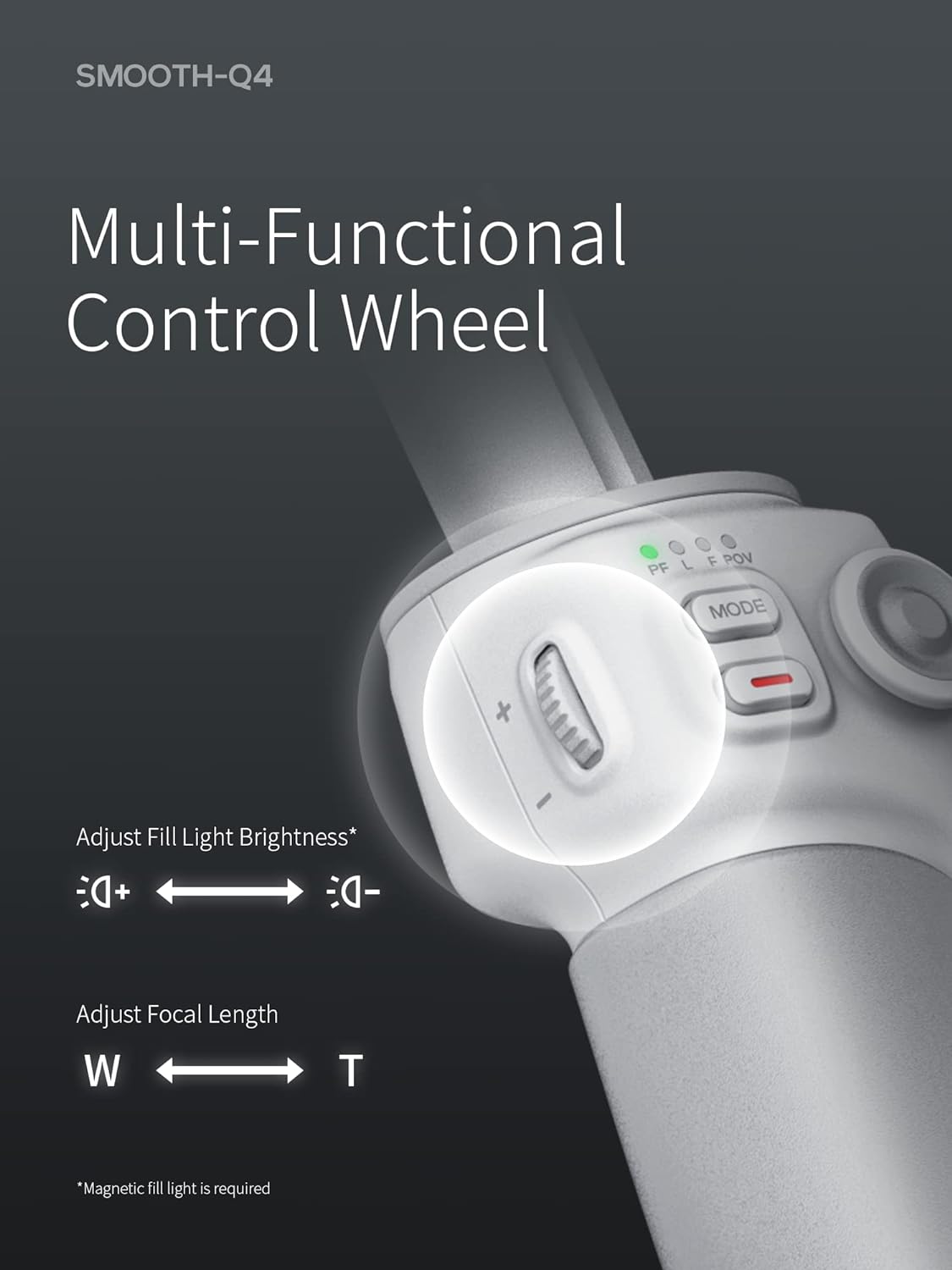 【Multi-Functional Control Wheel】One-hand operation becomes simpler with the multi-functional control wheel. Simply press to adjust the brightness and slide to adjust the focal length just at your fingertips.